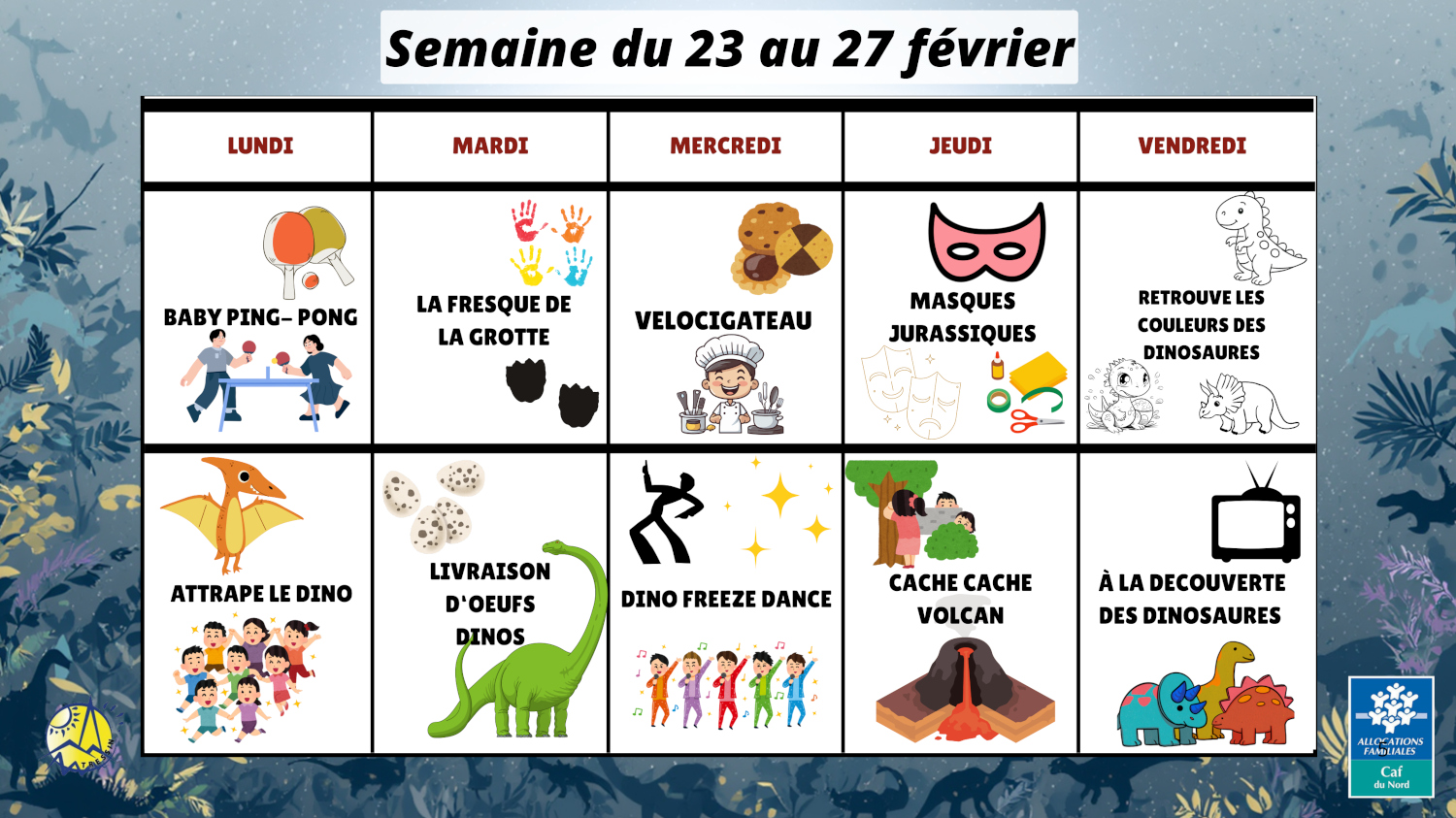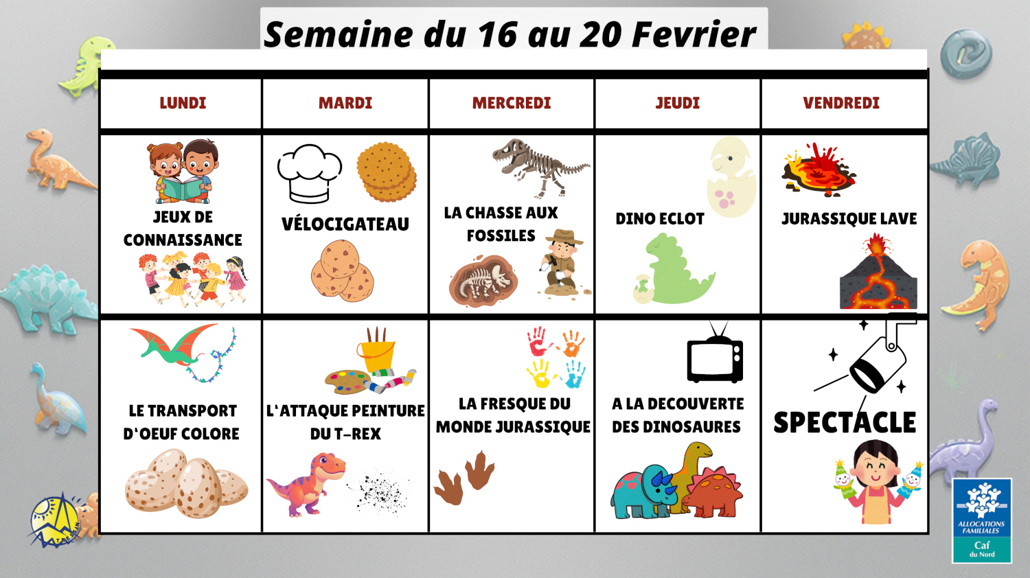 Notre centre de loisirs et toute son équipe d'animateurs sont impatients d’accueillir vos enfants pour un centre placé sous le signe de la préhistoire… et plus particulièrement des dinosaures.