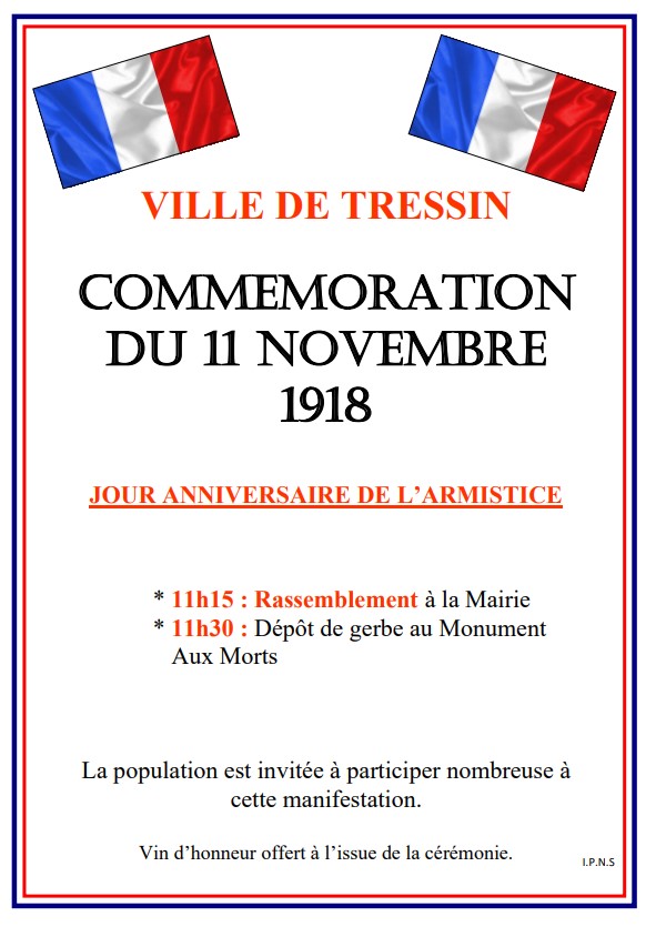 Tressin : Commémoration de la victoire du 11 novembre 1918 Détails Catégorie : Les événements Création : mardi 4 novembre 2025 15:27 Mis à jour : mardi 4 novembre 2025 15:29 Publication : mardi 4 novembre 2025 15:27 Écrit par Service administratif Suivant