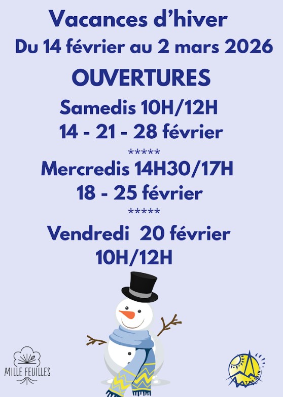 Horaires d'ouverture de l'Espace Culturel Albert Uderzo pendant les vacances d'hiver 2026 Détails Catégorie : L'espace culturel Création : jeudi 22 janvier 2026 13:02 Mis à jour : jeudi 22 janvier 2026 13:03 Publication : jeudi 22 janvier 2026 13:02 Écrit par Service administratif