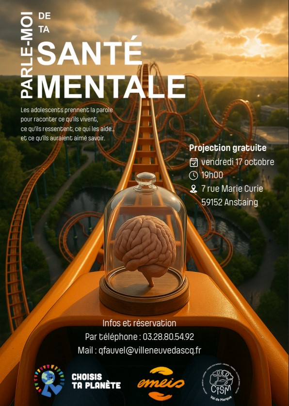 Parle-moi de ta santé mentale : les adolescents prennent la parole. Une projection gratuite le vendredi 17 octobre 2025 à 19h au 7 rue Marie Curie à Anstaing - sur réservation