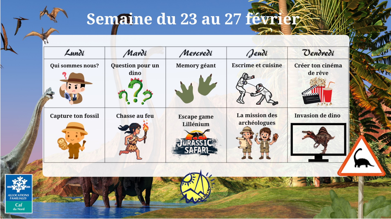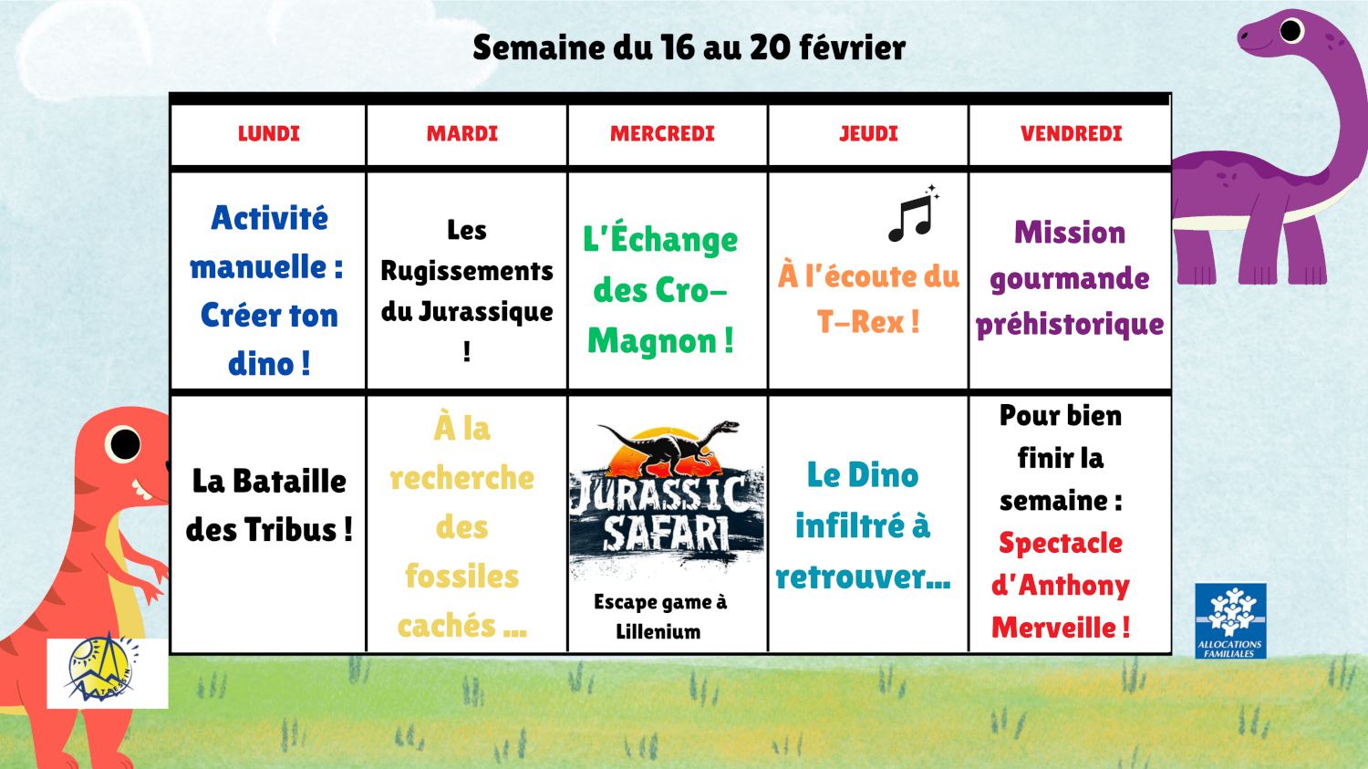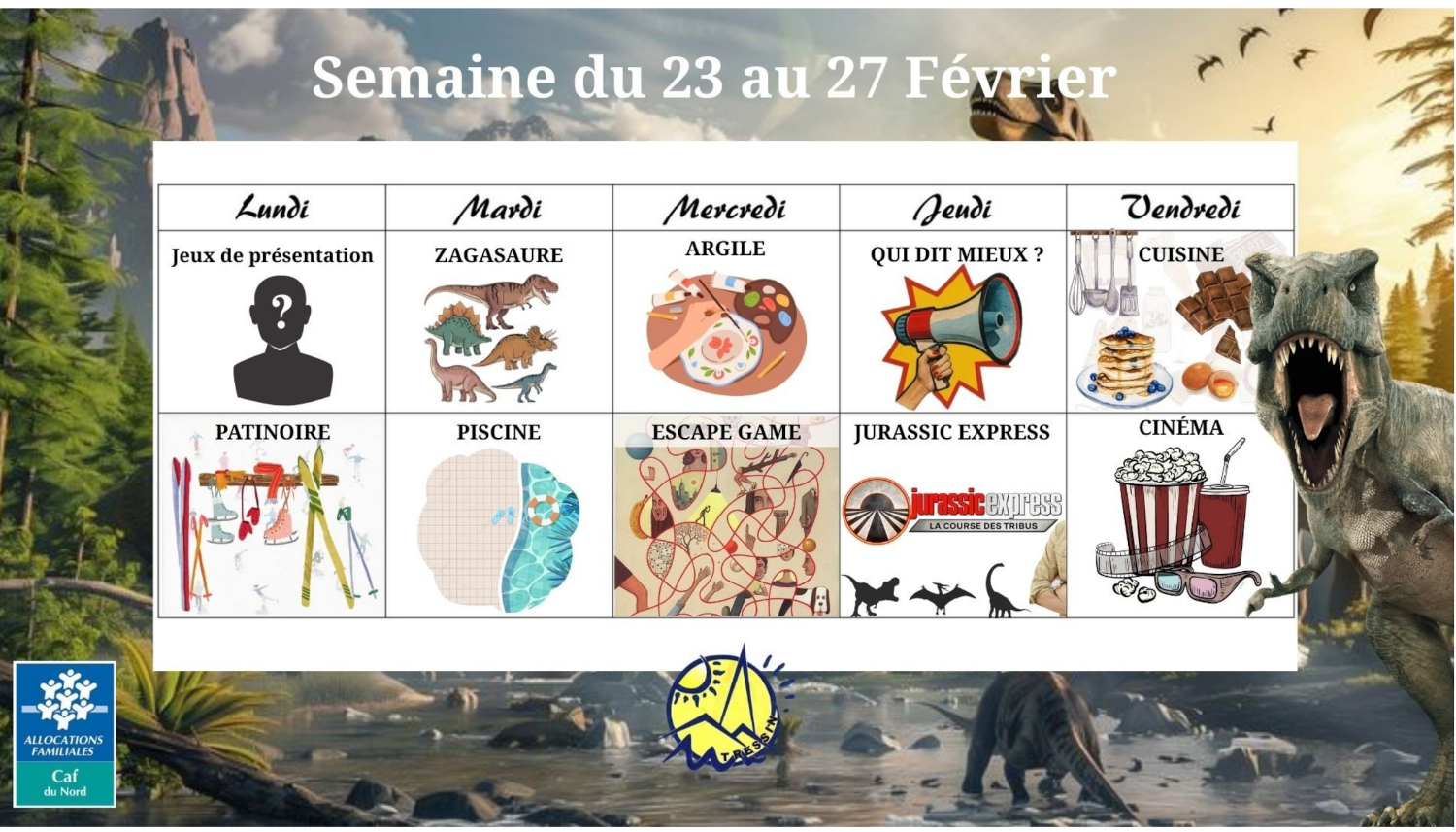 Notre centre de loisirs et toute son équipe d'animateurs sont impatients d’accueillir vos enfants pour un centre placé sous le signe de la préhistoire… et plus particulièrement des dinosaures.