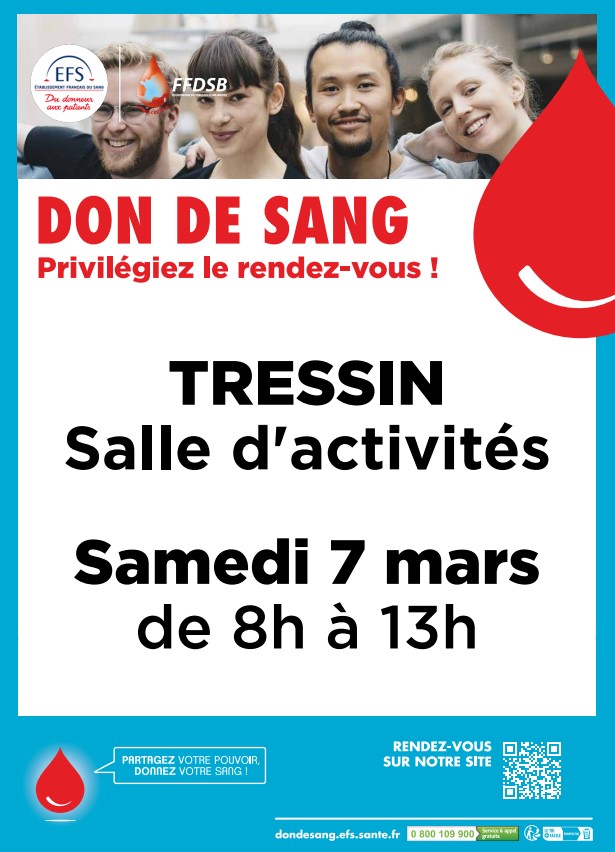 L'Établissement Français du Sang (EFS) vous invite à sa prochaine collecte à TRESSIN :